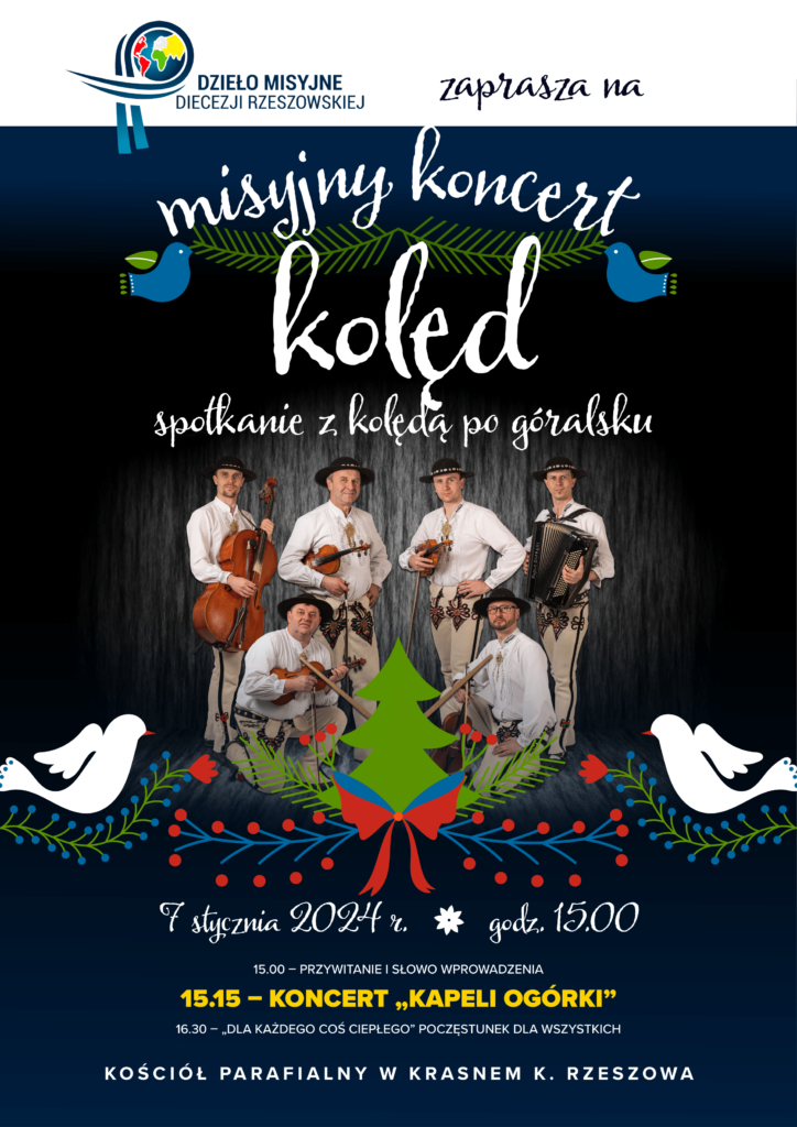W radosny czas Bożego Narodzenia pozdrawiamy wszystkich Przyjaciół Misji i zapraszamy na Koncert kolęd, który odbędzie się w Krasnem k.Rzeszowa w Niedzielę 7 stycznia 2024 w Kościele Parafialnym. Po koncercie wszystkich zapraszamy na wspólną agapę na parkingu przy plebani.
